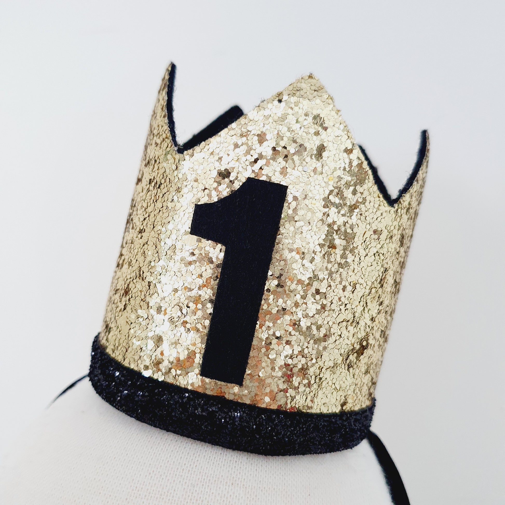 1st Birthday Crown / Party Hat / Headband - GOLD / BLACK
