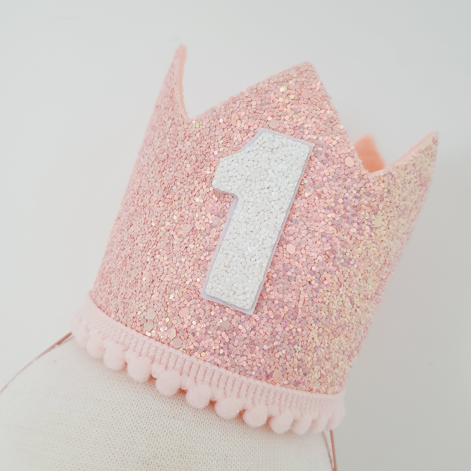 1st Birthday Crown / Party Hat / Headband - PEACHY PINK / ROSE GOLD