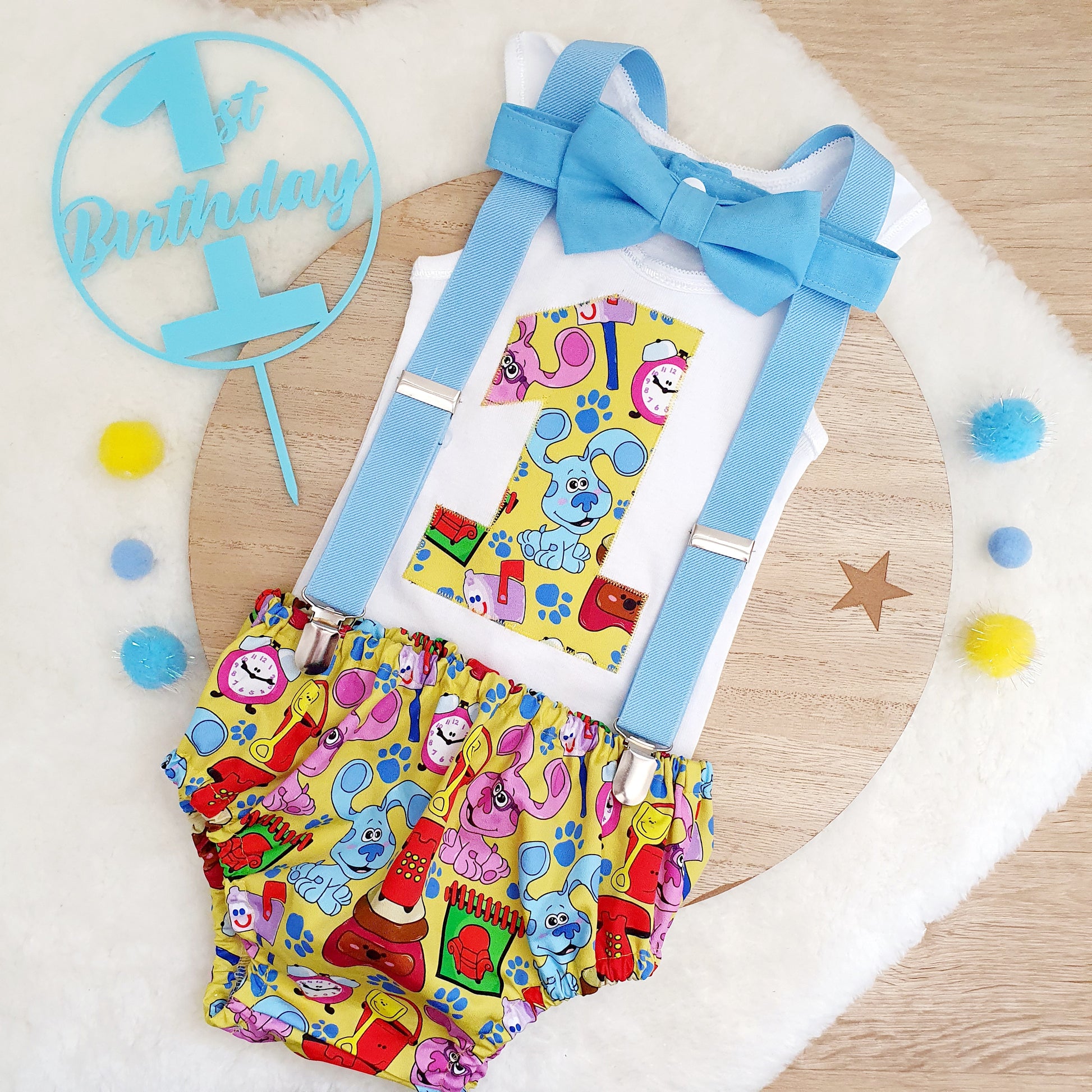 BLUES CLUES print Boys 1st Birthday Outfit, Size 0
