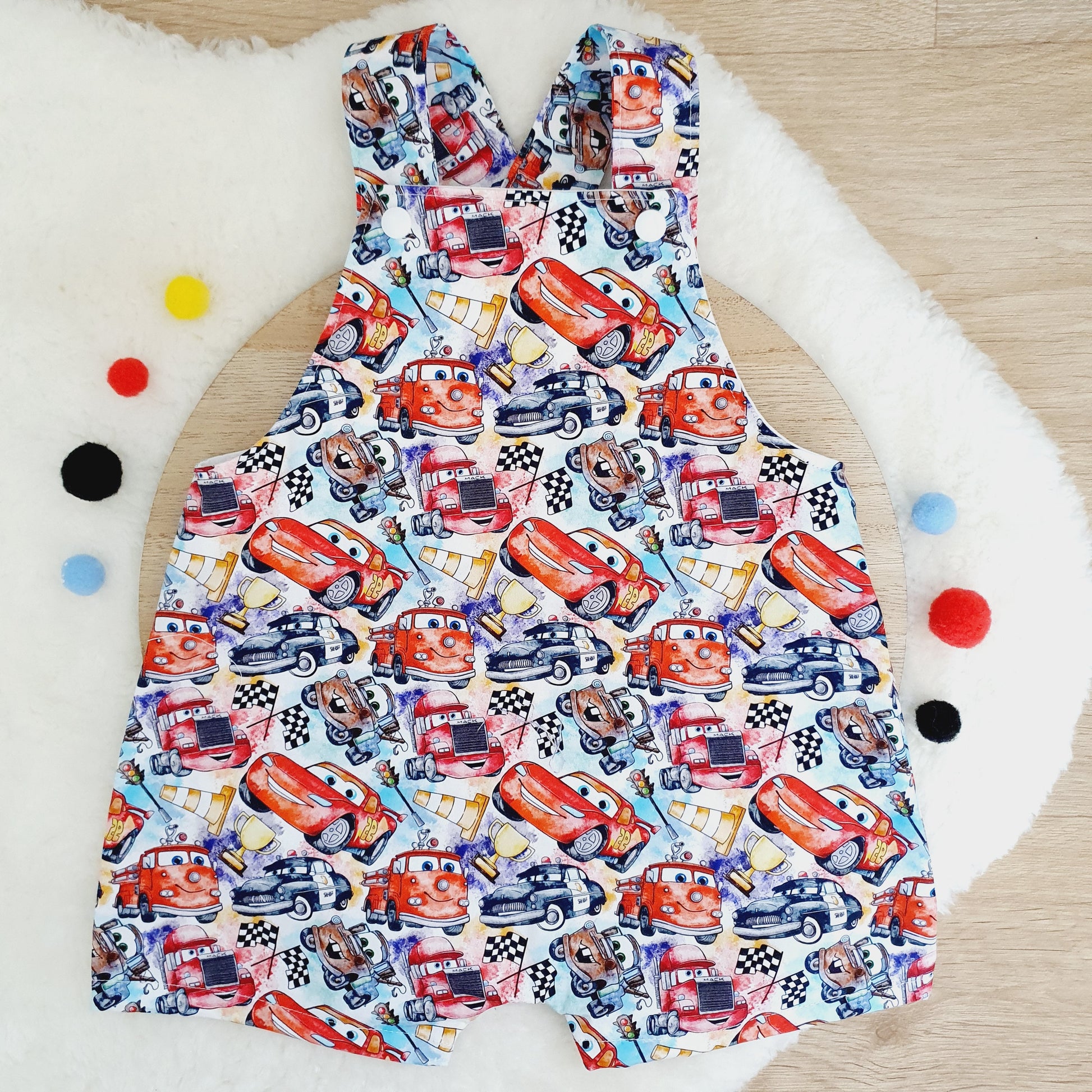 CARS print Overalls, Baby Overalls, Short Leg Romper, Size 1