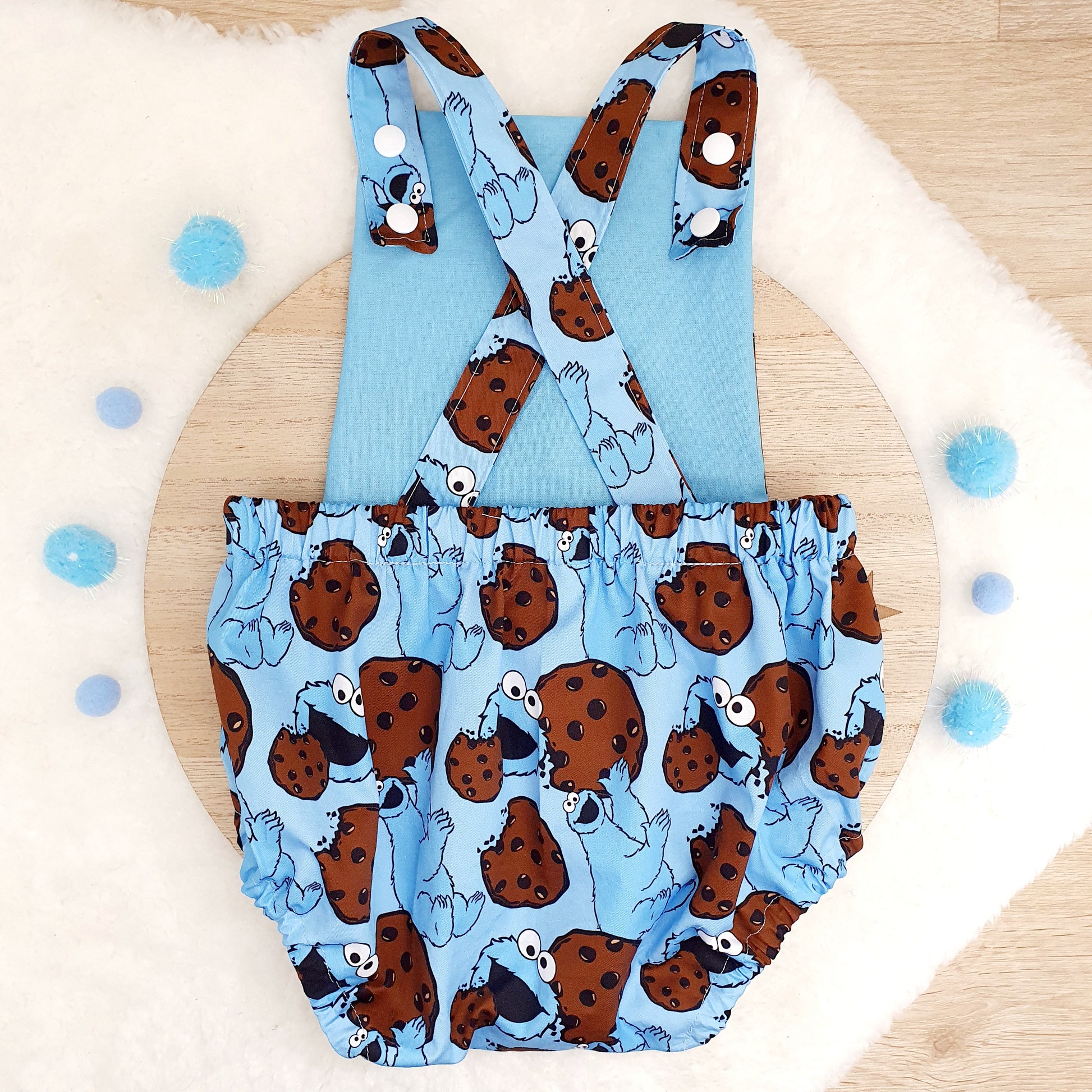 The romper includes crossover back shoulder straps which easily snap on and off front panel of romper. We have included 2 snap adjustments, at the shortest length it is suited to size 1 baby but we understand some babies are just long....so we have made the straps slightly longer to accommodate this too (when snapped at its longest length). It is sized 1 (12-18 months) suitable for baby upto 84cm.
