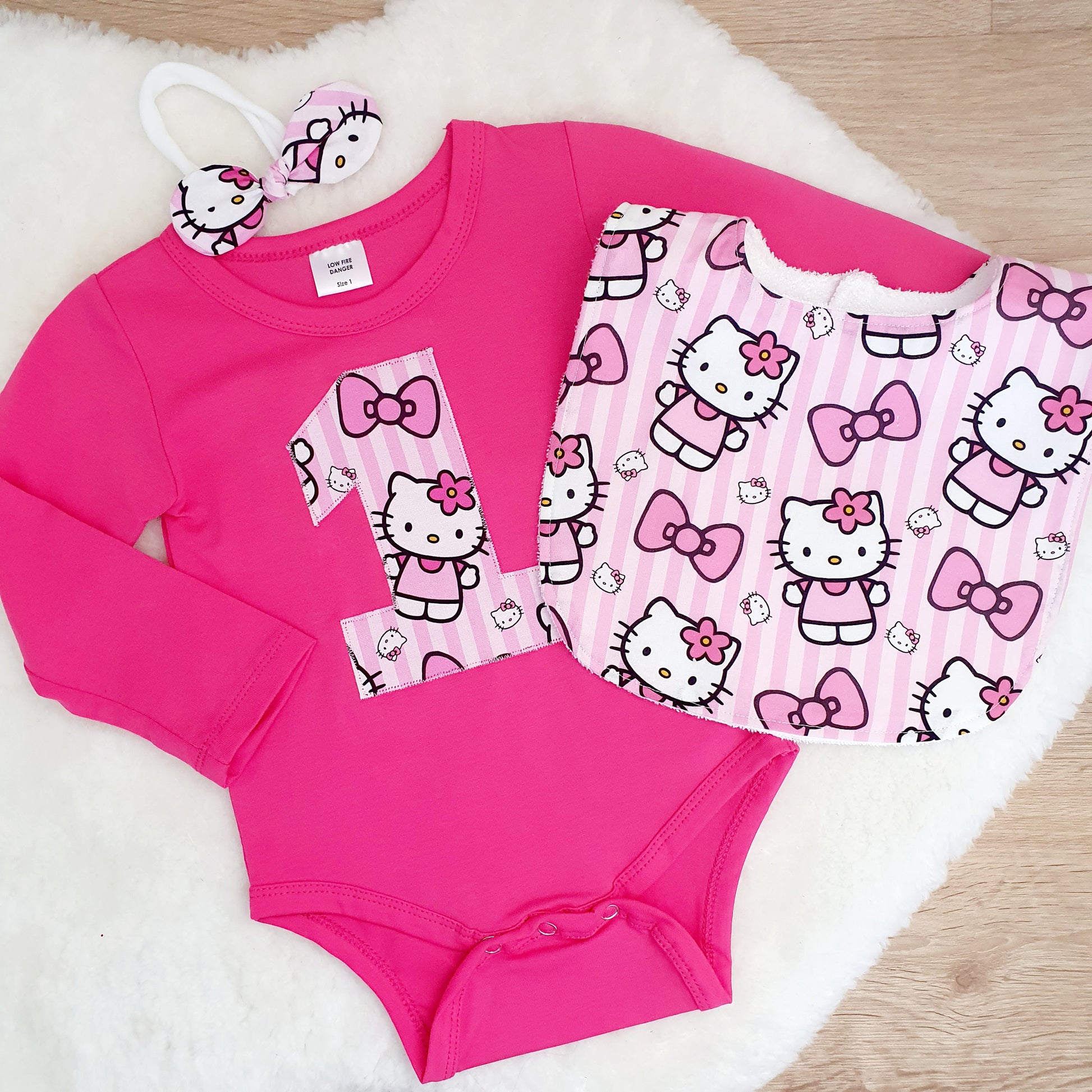 Girls 1st Birthday Long Sleeve Bodysuit, Bib & Headband Set, Size 1