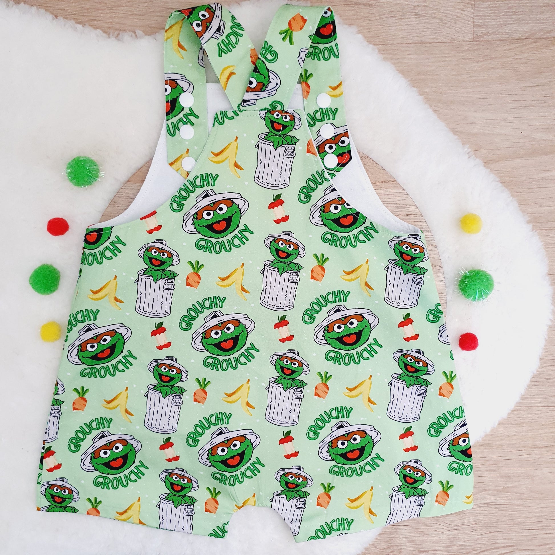 GROUCH print Overalls, Baby / Toddler Overalls, Short Leg Romper, Size 2