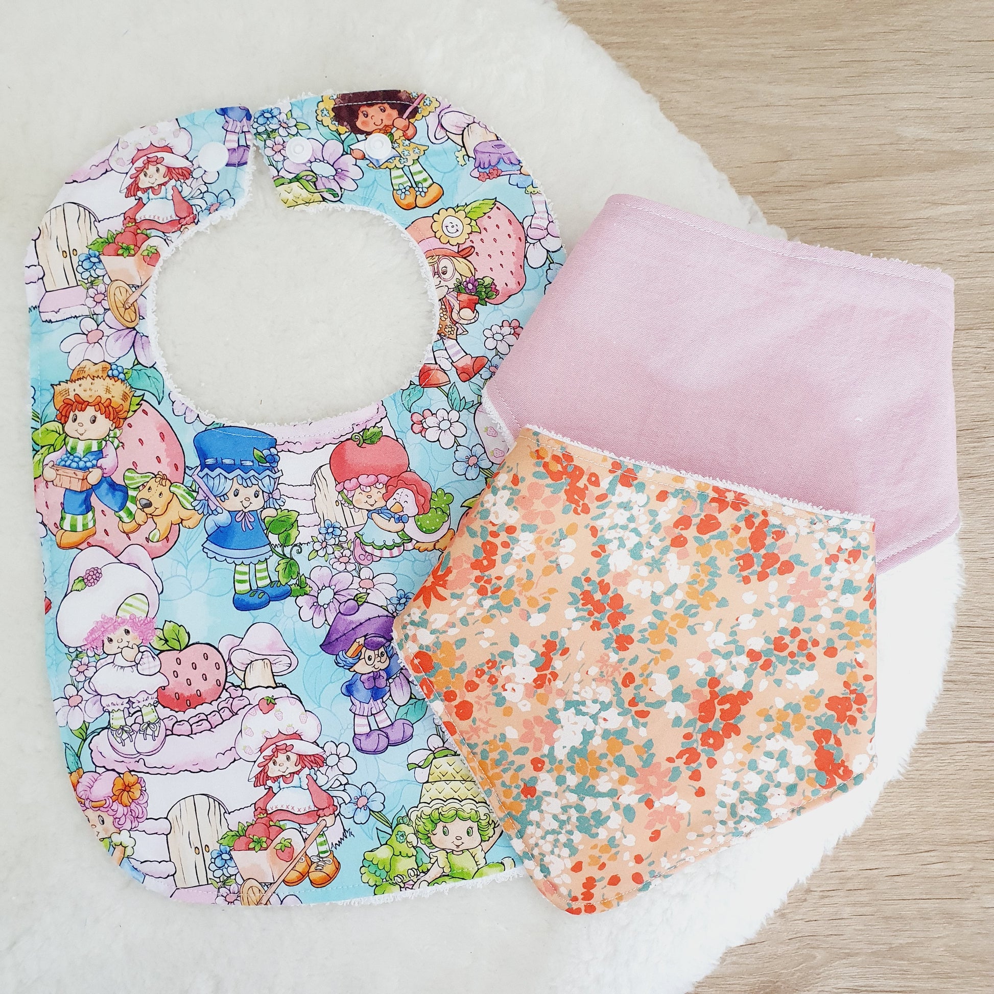 3 x beautifully handmade baby bibs featuring 100% cotton print front and backed with ultra absorbent white bamboo towelling. Each bib features industrial strength snap press studs.