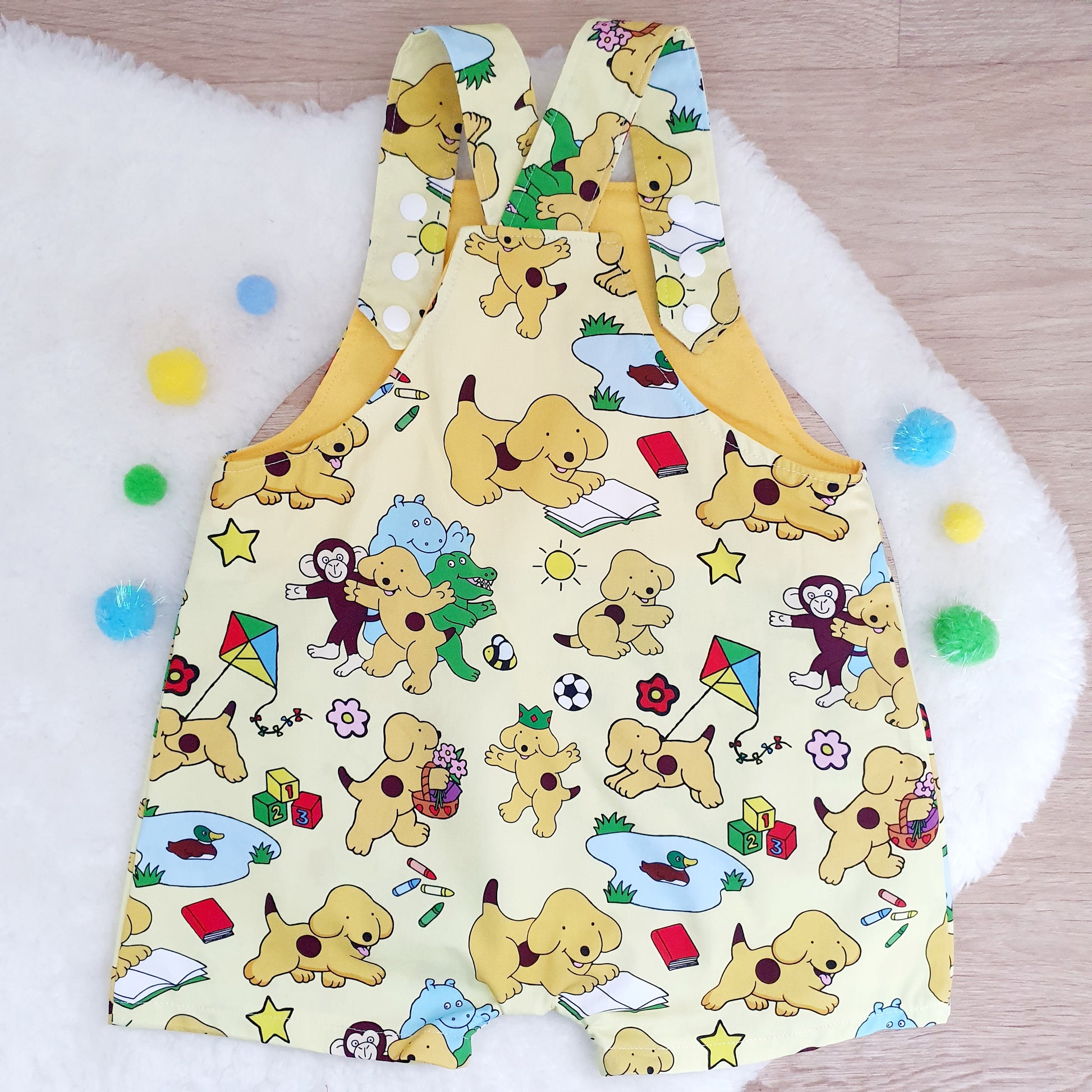 SPOT ON YELLOW print Overalls, Baby / Toddler Overalls, Short Leg Romper, Size 2