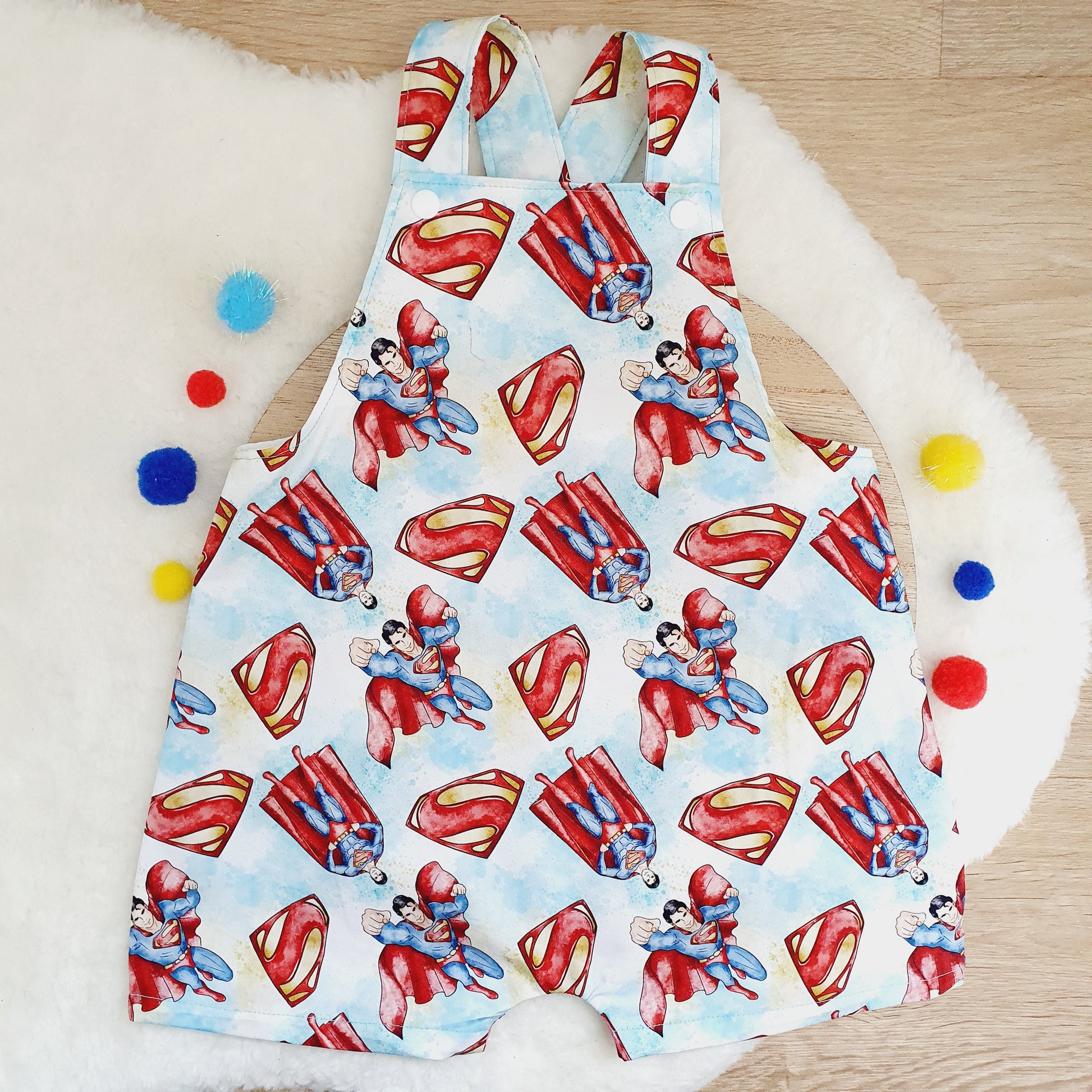 SUPERMAN print Overalls, Baby / Toddler Overalls, Short Leg Romper, Size 2
