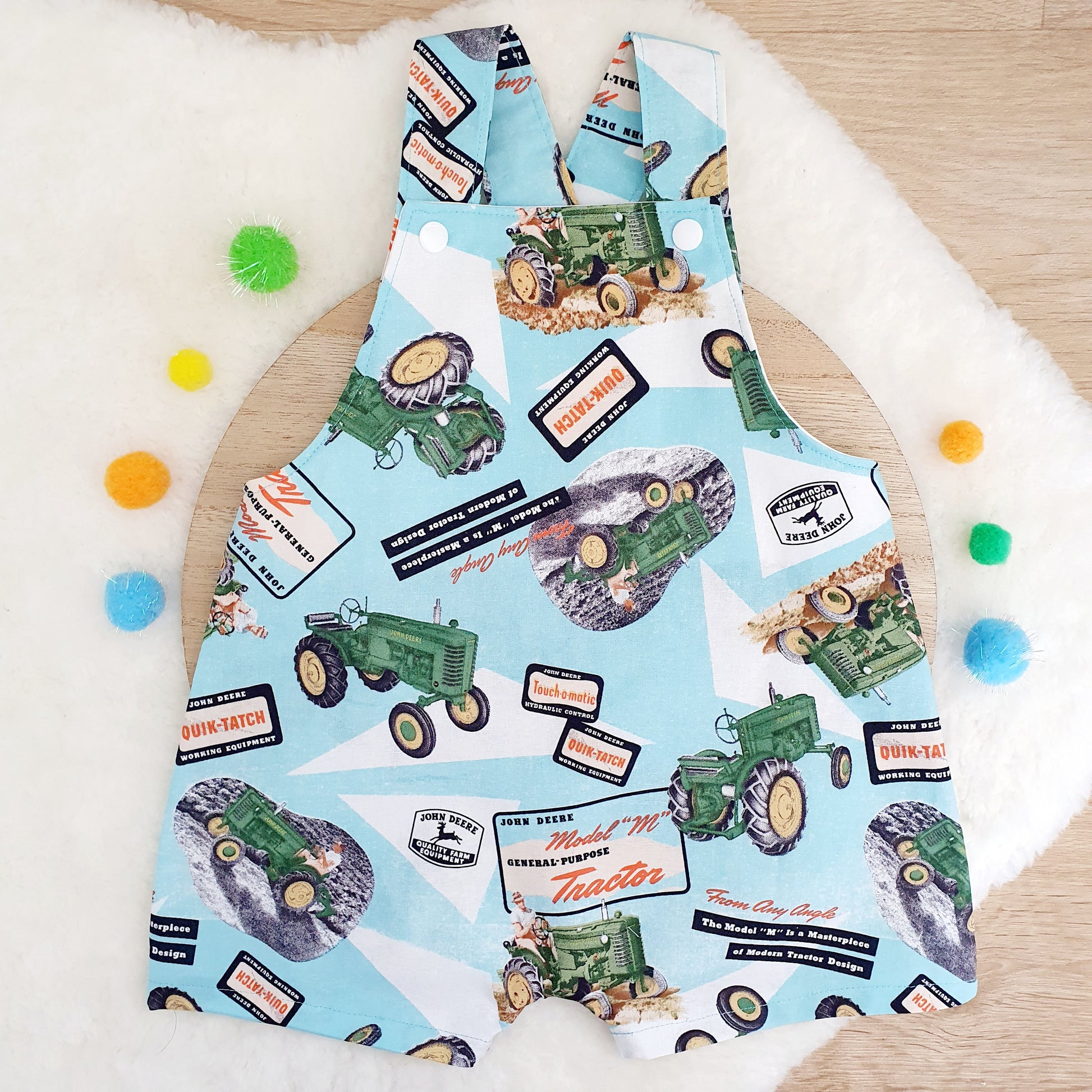 TRACTOR print Overalls, Baby Overalls, Short Leg Romper, Size 1