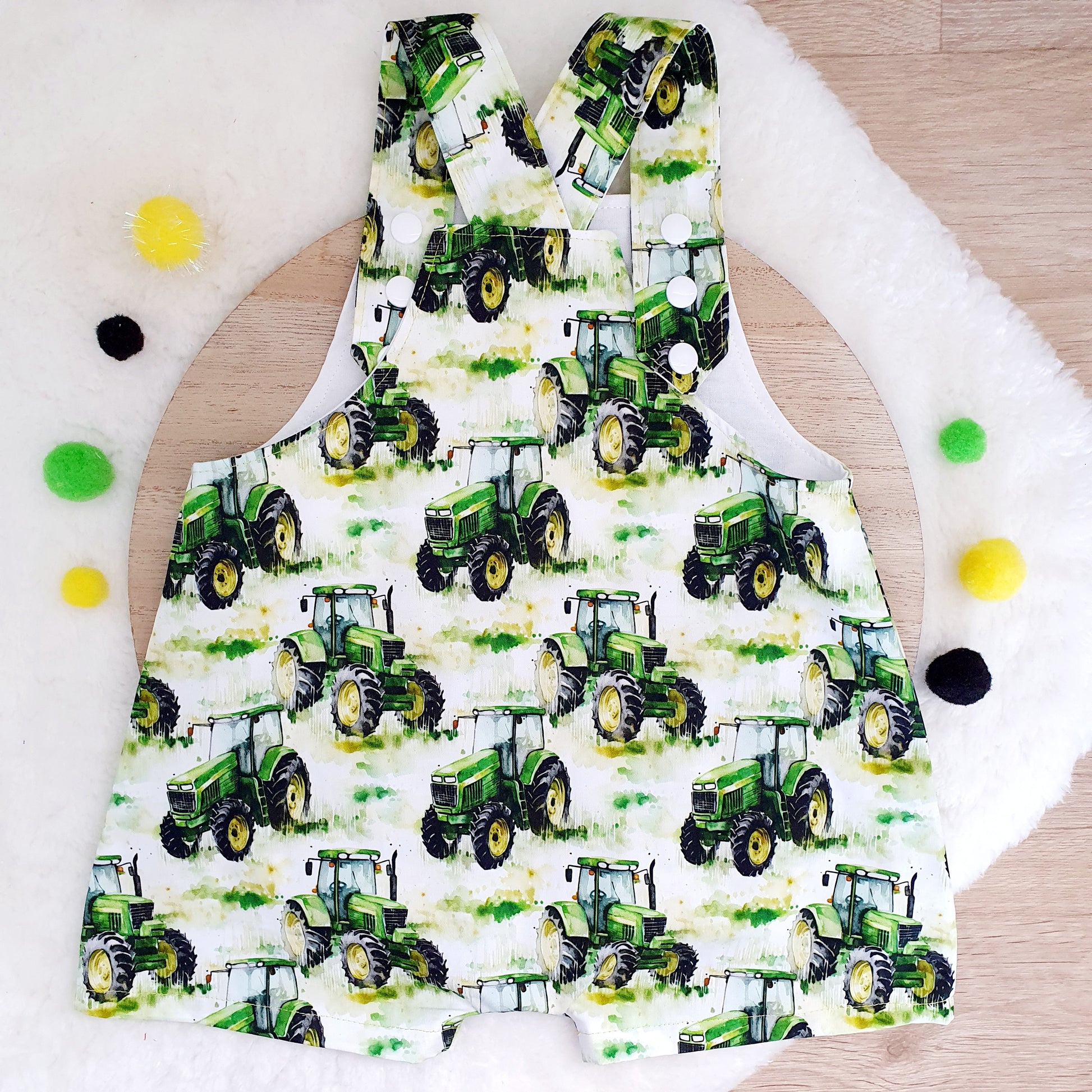 TRACTOR print Overalls, Baby Overalls, Short Leg Romper, Size 1